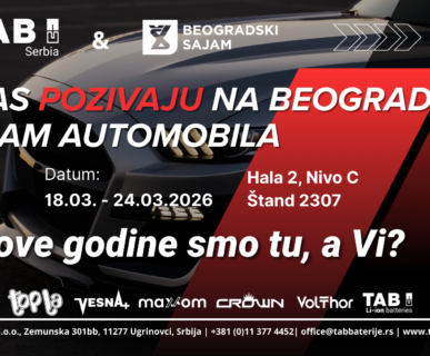 Tab Baterije d.o.o. je vodeći i jedini ovlašćeni uvoznik za teritoriju Republike Srbije renomiranih brendova, kao što su Topla, Volthor, Vesna, Maxxom i TAB starterski akumulatori, kao i TAB trakciona i stacionarna baterija. Kroz godine posvećenosti i stručnosti, Tab Baterije d.o.o. se izdvojio kao pouzdani partner i lider na tržištu energetske industrije, nudeći širok asortiman visokokvalitetnih baterija koje zadovoljavaju najstrože standarde i potrebe kako za lične, tako i za industrijske primene. Naš cilj je da obezbedimo vrhunske proizvode i izuzetnu uslugu korisnicima širom Srbije, pružajući im dugoročnu i efikasnu energiju kroz najnovije tehnologije i inovacije u oblasti baterija. Naša posvećenost kvalitetu i poverenju potrošača čini nas prvim izborom za sve potrebe vezane za akumulatore i baterijske sisteme.